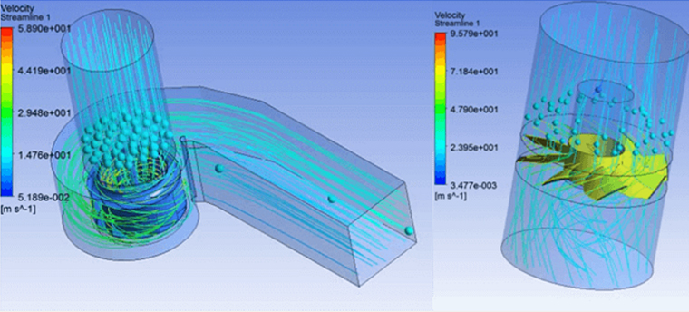 (開發(fā)的離心風(fēng)機(jī)、軸流風(fēng)機(jī)模型流場流線圖)